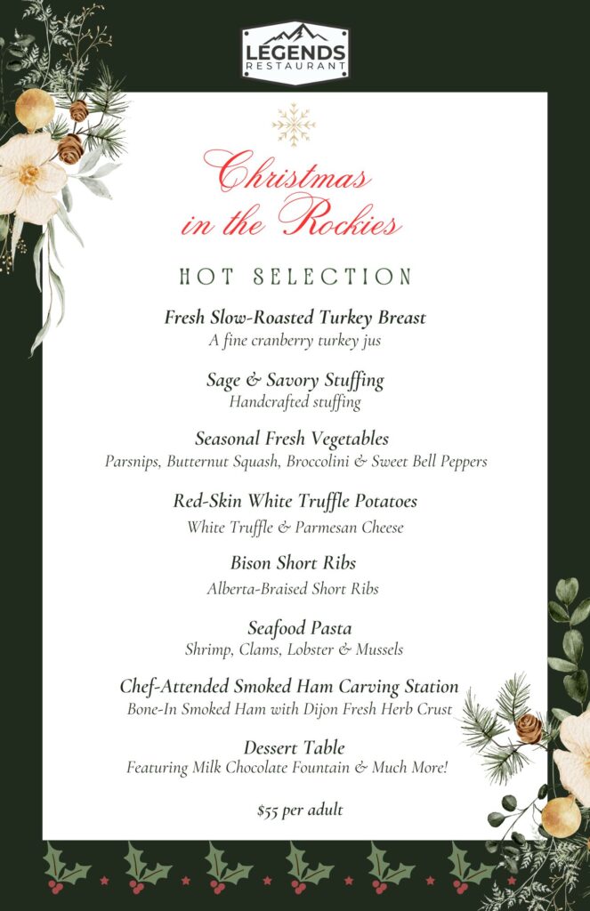 LEGENDS RESTAURANT – 403-522-5418 / ext. 5062 from guestroom