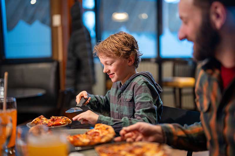 Guests often start their evenings gathered around a hearty meal at Legends or Timberwolf Pizza & Pasta Café, where comfort food and alpine favourites take the chill out of the day. It’s the kind of dining that brings people together; families sharing stories from the hill, couples lingering over warm plates, and friends mapping out the next day’s adventure. For those who want a slower evening, the inn offers plenty of inviting corners to settle into, from fireside lounging to quiet moments in your suite with a warm drink in hand.